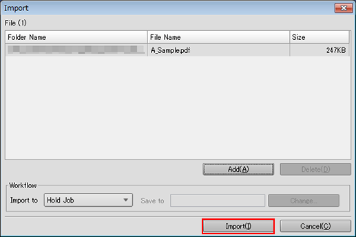 You can import a file on the computer to a hold job, secure job, or HDD job.