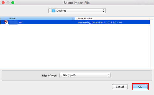 The [Select Import File] screen closes and the screen returns to the [Import] screen.
