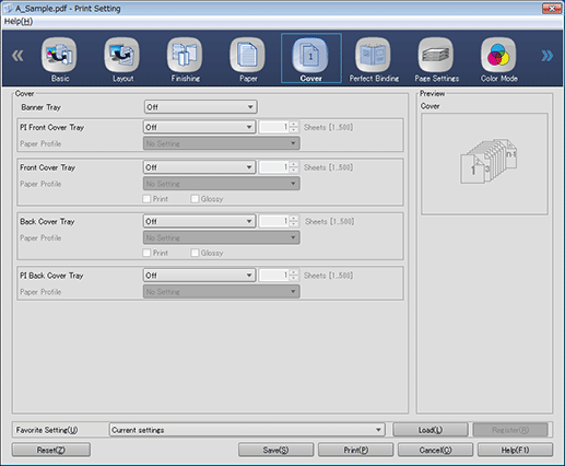 The setting items here are the same as those of the "Cover" screen of the PS Plug-in driver. For the description of the setting items, refer to Cover.
