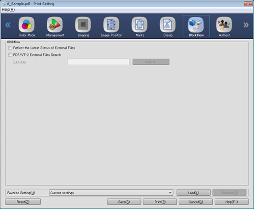 To search for the external file of VDP resource data, select the [PDF/VT-2 External Files Search] check box, click [Look in], then specify the folder.
