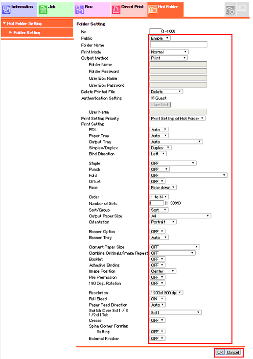 For details about each item, refer to Creating a New Hot Folder.