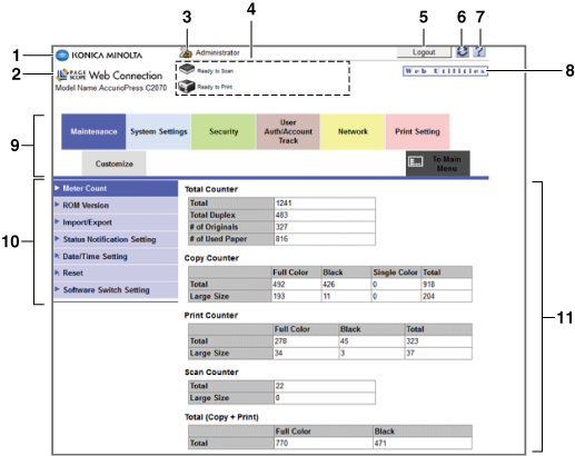 To jump to the following website, click the PageScope Web Connection logo on the screen.