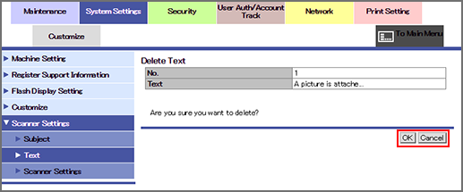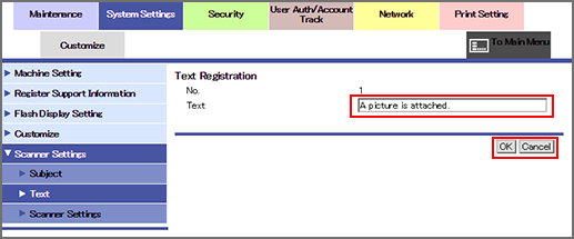 Click [Scanner Settings] - [Text] on the menu of [System Setting] tab to display this screen.