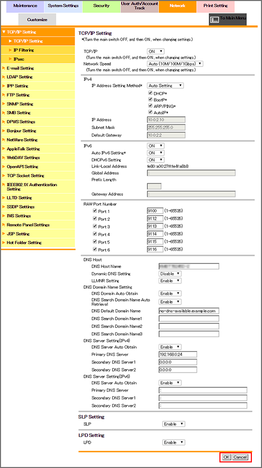 For details, refer to TCP/IP Setting, IP Filtering, or IPsec.