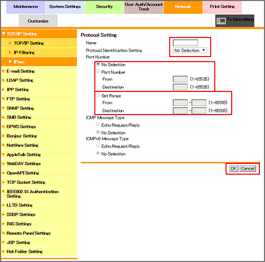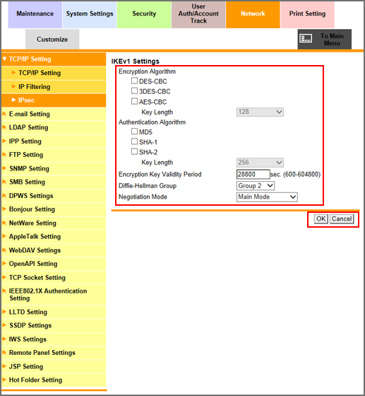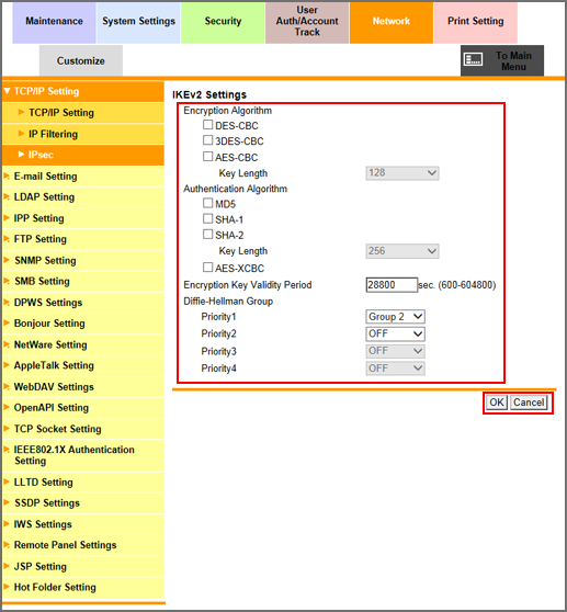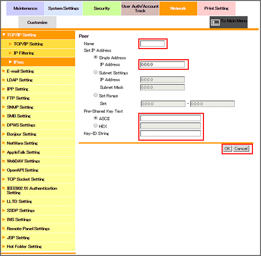 Select the [IPsec Setting] radio button, and click [OK].