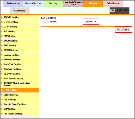 1. Select either [Enable] or [Disable] from the [LLTD Setting] drop-down list.