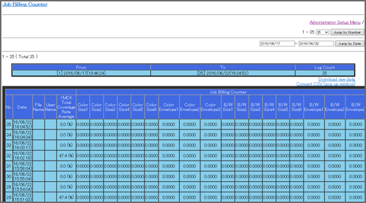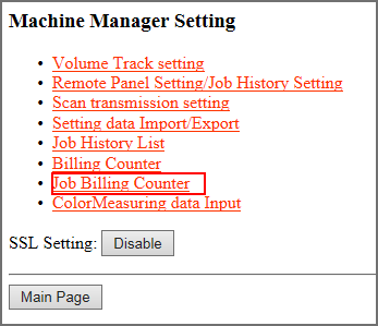 You can also check the job billing counter by clicking [JOB LIST] - [Output Hist.] on the machine.