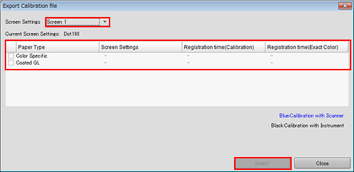 From the [File] menu on the [Calibration Manager] screen, select [Export Calibration file].