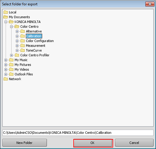 After the calibration data is saved, the screen returns to the [Export] screen.