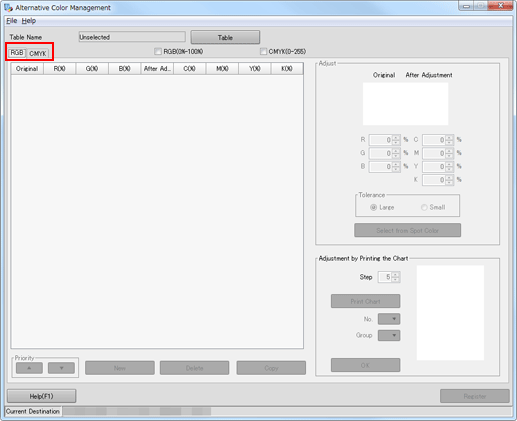 Click [RGB] tab or [CMYK] tab on [Alternative Color Management] screen.