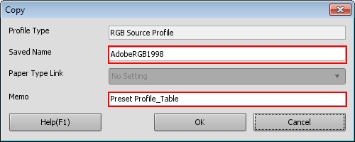• Similar operation can be done by selecting, on the [File] menu, [Profile Type] - [RGB Source Profile].