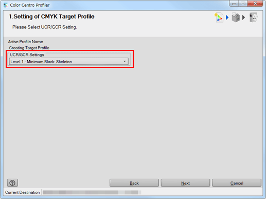 In [UCR/GCR Settings], select [Level 1 - Minimum Black: Skeleton].