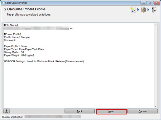 If you launched Color Centro Profiler by clicking [Printer Profile] on the [Profile Management] screen, Color Centro Profiler is closed to return to [Profile Management] screen.