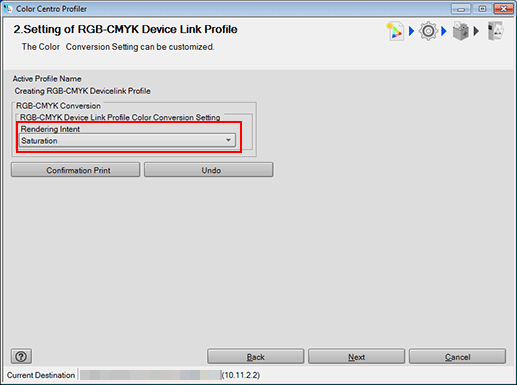 In the Color Conversion Setting screen, you specify a rendering intent.