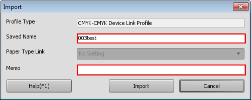 Click [CMYK-CMYK Device Link Profile] on [Profile Management] screen.