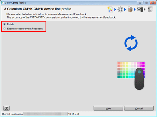 When you select [Finish], the Complete screen appears. Go to CMYK-CMYK DLP (Creation): Complete the Procedure.