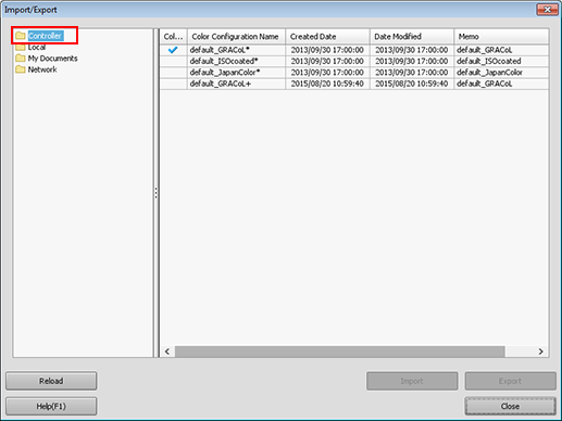• When a folder other than [Controller] is selected on the tree view, [Import] is not available.