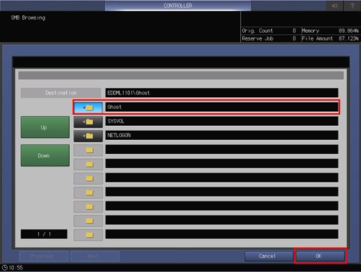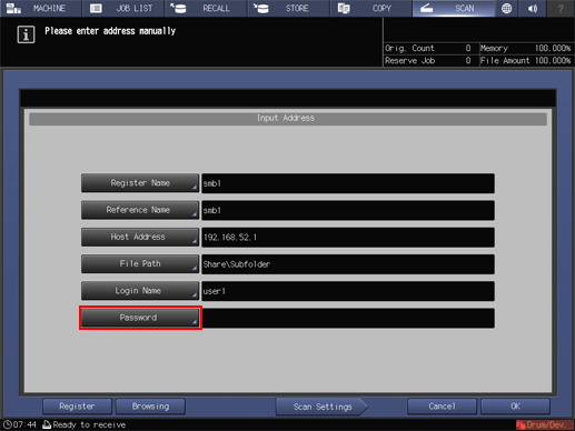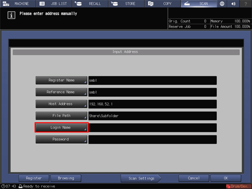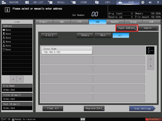 To select a registered address, refer to "When an SMB Server is Already Registered."