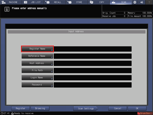 The register name is automatically input in [Reference Name]. If you want to change the reference name, press [Reference Name] and input the reference name again.