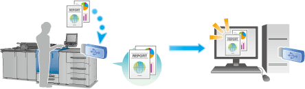 You can send the data scanned from the ADF or the original glass (scan data) to a USB flash drive connected to a USB port.