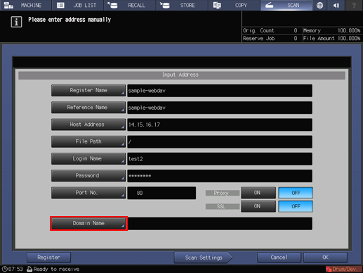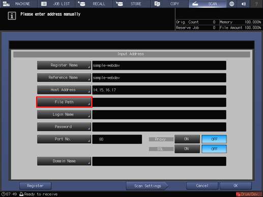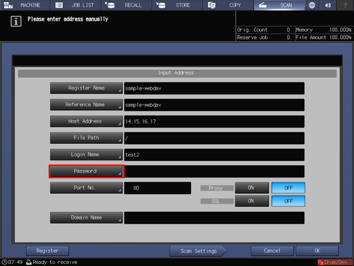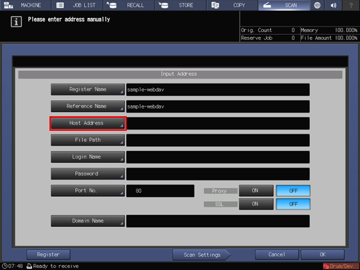 • To select a registered address, refer to "When a WebDAV Server is Already Registered."