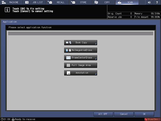 Pressing [All OFF] turns all application functions off.
