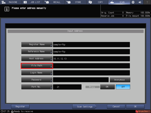 To manually enter a destination, refer to "When an FTP Server is Not Registered."