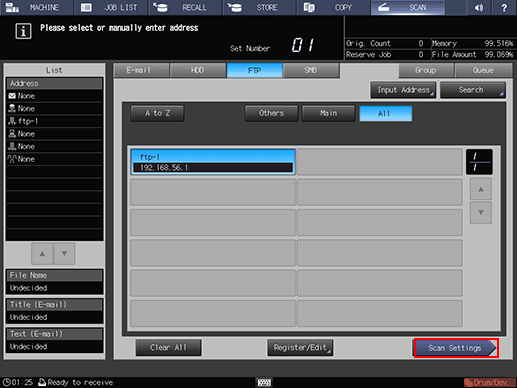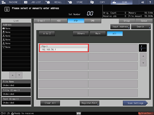 To select a registered address, refer to "When an FTP Server is Already Registered."