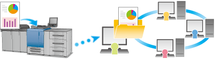 The scan data sent to the SMB server can be file-shared with computers with the SMB protocol.