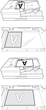 | Select for the original positioned in ADF with the head (top) toward the right side of the ADF. Or, select for the original positioned on the original glass with the head (top) toward the right side of the original glass. |