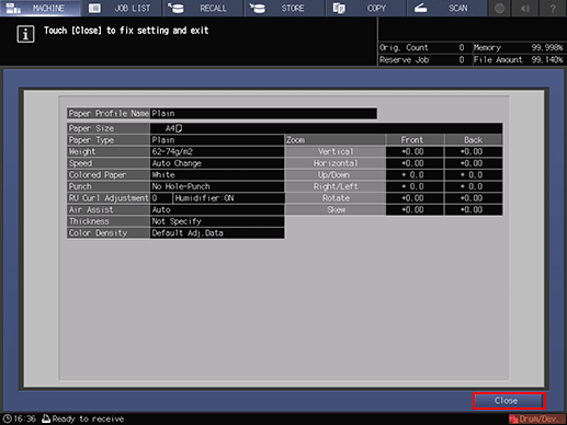 The screen returns to the [MACHINE] screen or the [COPY] screen.