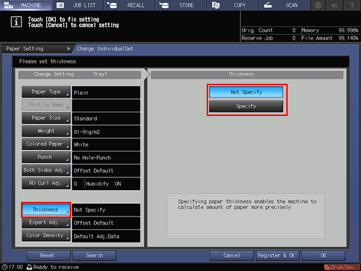 [Thickness] is displayed when Image Controller IC-603 is mounted.