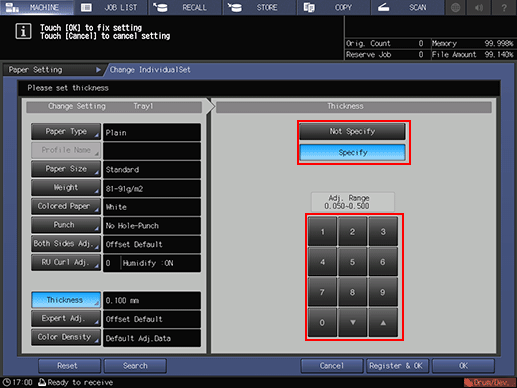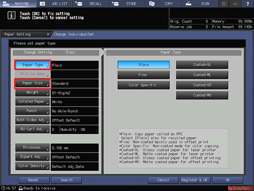 To apply and register paper conditions, press [Register & OK]. Proceed to step 27.