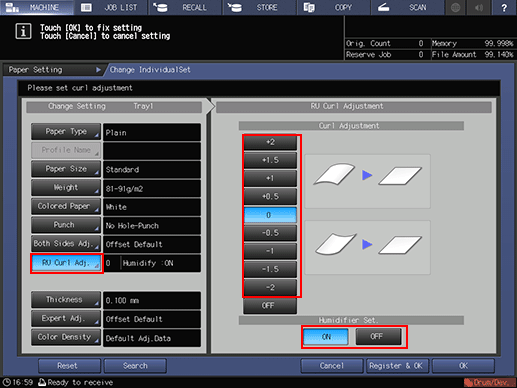 For details about Curl Adjustment, refer to Curl Adjustment: Reducing Curl (Relay Unit RU-509).