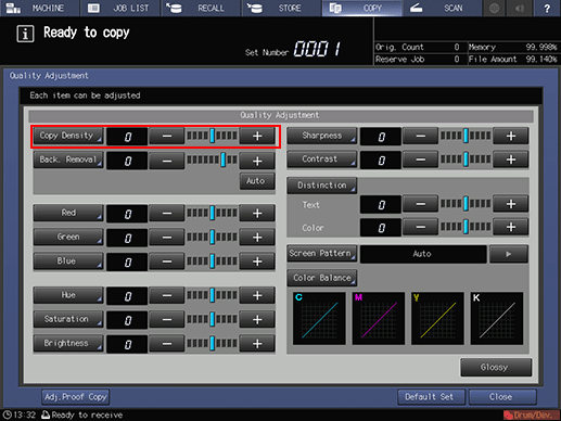 If you press [Default Set] on the [Quality Adjustment] screen, all adjustment items are returned to the standard level.