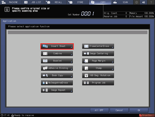 Press [OK] to return to the [Insert Sheet] screen.