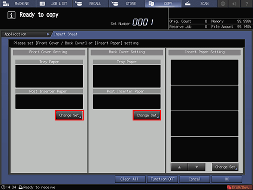 Press [Change Set] under [Insert Sheet Setting].
