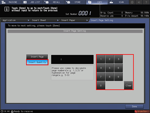 When the setting is completed, press [Done]. This returns to the [Insert Sheet] screen.