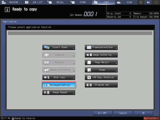 Press [OK] on the [Application] screen to return to the [COPY] screen.