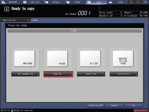 To cancel the Stamp function with the current setting saved, press [Function OFF].
