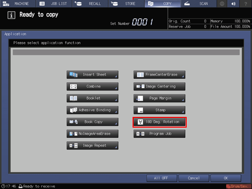 Press [OK] on the [Application] screen to return to the [COPY] screen.