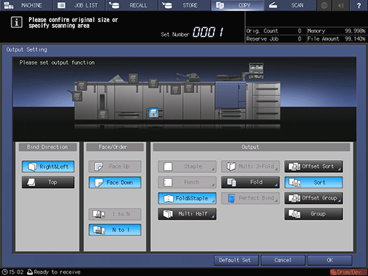 Press [OK] on the [Output Setting] screen.