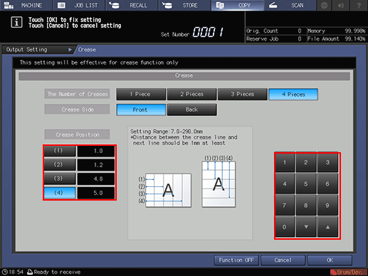 Select [(1)] for [Crease Position], then press the keypad on the screen, the [