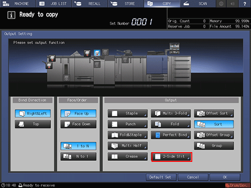 [2-Side Slitting] | Slits both sides at the top and bottom of all sheets (the top and bottom are for the paper conveyance). Slitting can be specified for each of the top and bottom. |