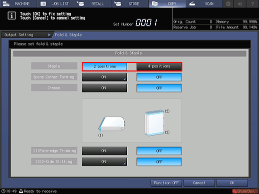In [Staple], select [2 Positions] or [4 Positions].