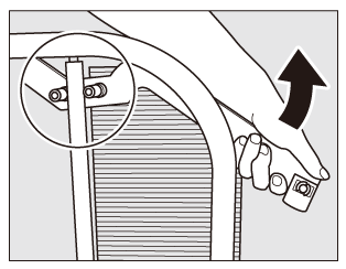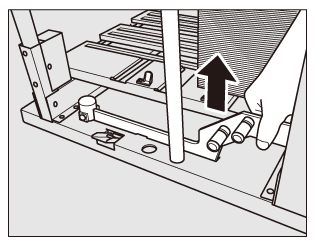 Pull up the paper stopper as illustrated, then turn it toward the handle of the carriage to remove the stopper from the paper holder.