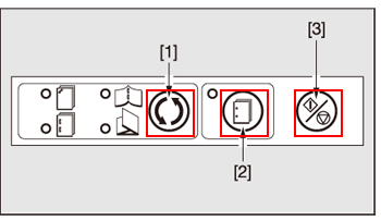 ![]() | [1]: Staple mode selection button [2]: Punch button [3]: Start/Stop button |