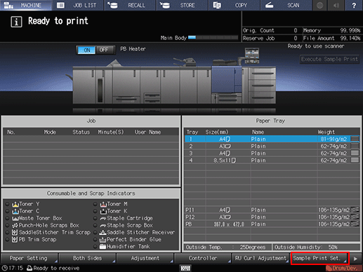 • To stop the set sample printing, press the [MACHINE] tab to display the [MACHINE] screen, then press [Sample Print Set.] to select [Do Not Sample Print].