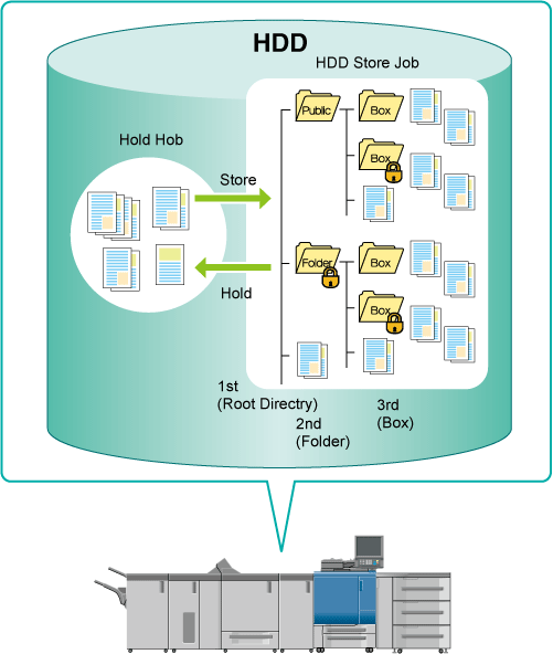 Further, you can manage a job saved on the HDD using a folder or user box.
