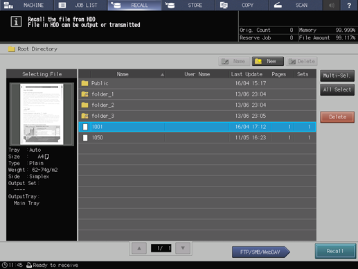 Top-level location. A maximum of 100 jobs can be saved in the root directory. One public folder is created by the factory default setting. An additional 1,000 (maximum) folders can be created.